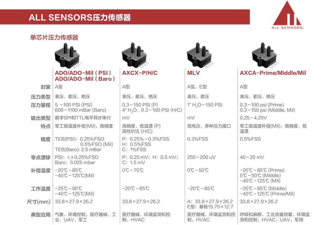 在儀器行業(yè),ALL SENSORS傳感器久經(jīng)市場考驗,其高可靠性,高靈敏度和高精度保證了儀器的穩(wěn)定性和長壽命,已成為全球儀器廠商的首選。All Sensors傳感器主要面對OEM客戶群體。產(chǎn)品涉及航天航空、醫(yī)療設(shè)備、環(huán)保儀器、暖通空調(diào)、儀器儀表、生化分析等諸多領(lǐng)域。